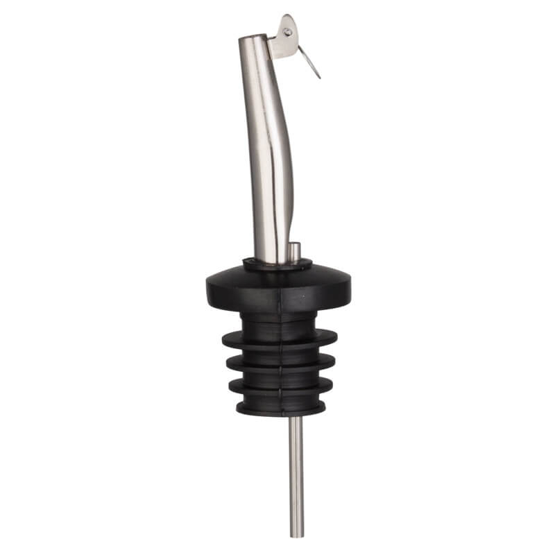 Der Ausgießer aus Edelstahl hat eine integrierte Kappe, die auf- und zu schwingt, wenn der Ausgießer gedreht wird. So ist der Flascheninhalt geschützt, während die Flasche mit dem Ausgießer im Regal oder auf den Tresen steht. Sobald Sie die Flasche zum Ausgießen kippen, schwingt die Kappe dank der Schwerkraft auf.