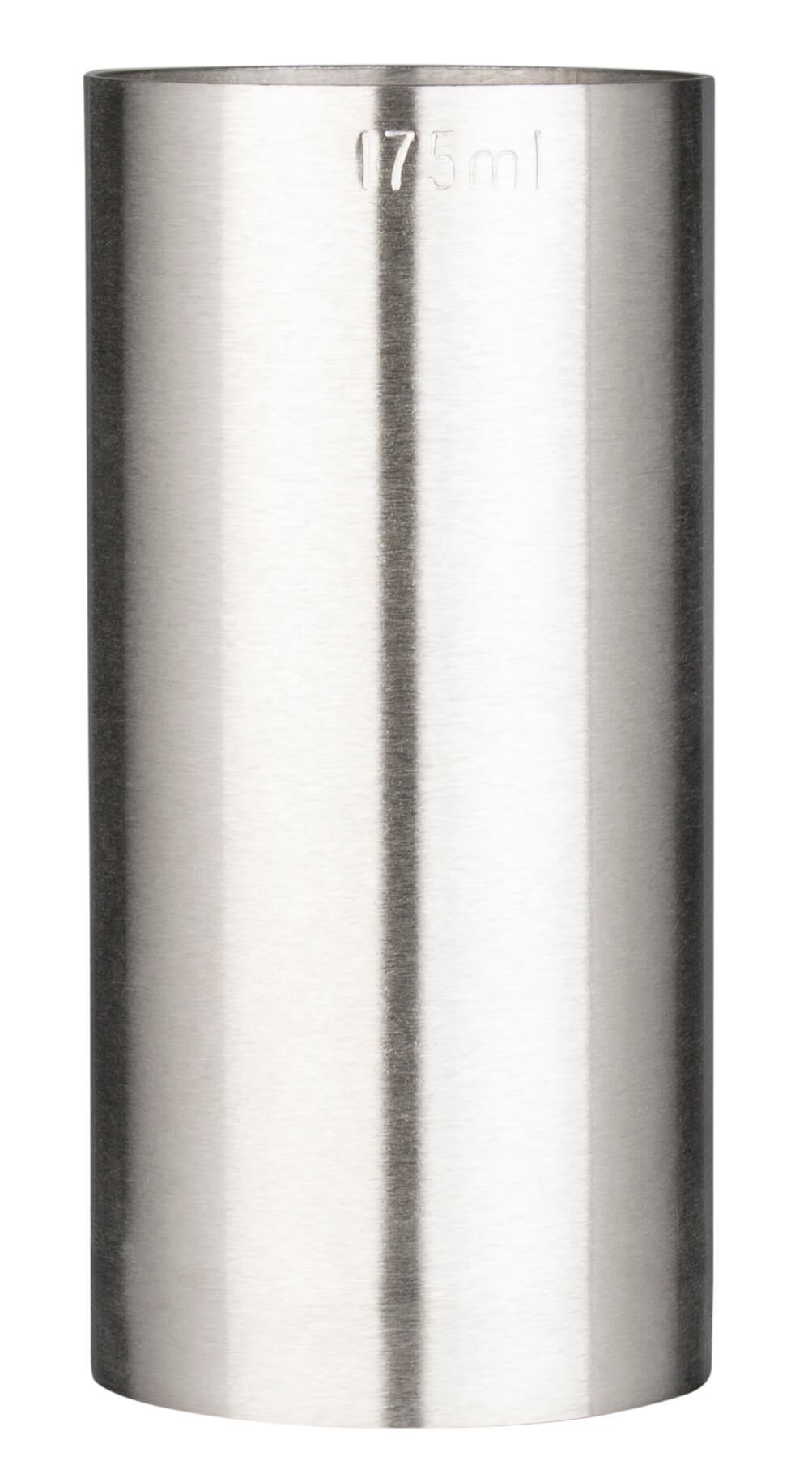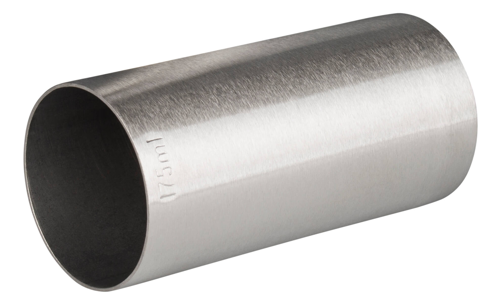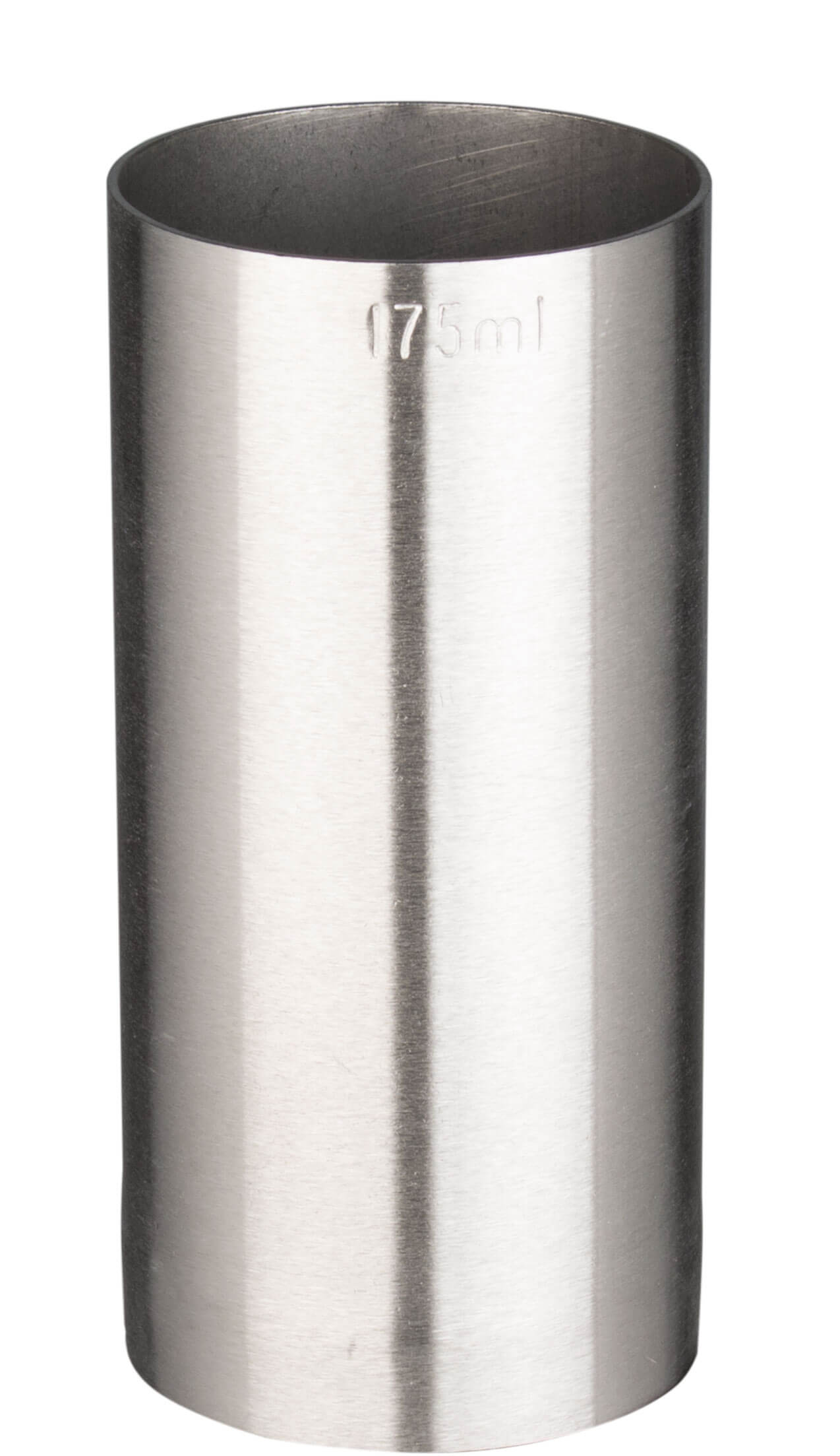 Dieses 175ml Barmaß aus Edelstahl dient zum Abmessen von Flüssigkeiten in der Küche oder hinter der Bar. Unterhalb des Rands auf der Außenseite ist die Füllmenge 175ml eingraviert. Zutaten mit dieser Menge können also gemessen werden, indem der Messbecher bis zum Rand gefüllt wird. Der Boden des Messbechers befindet sich auf einer Höhe von 1,0cm. Er hat ein angenehmes Eigengewicht und steht sicher auf jeder Oberfläche.