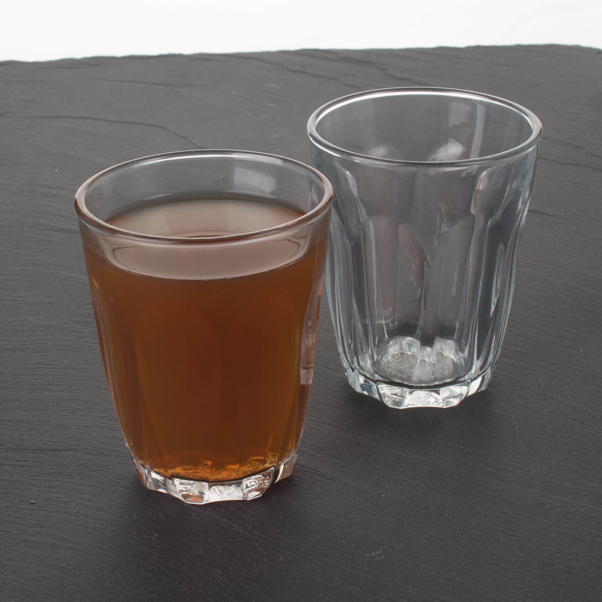 Dieses niedliche Glas aus dem Hause Duralex fällt mit knapp 8,0cm Höhe kaum auf dem Tisch auf. Doch es kann Ihren Gästen eine besondere Aufmerksamkeit schenken, wenn Sie diesen Becher mit Wasser zusammen mit einer komplexen Spirituose servieren. Bei einer anderen Gelegenheit servieren Sie einfach kleine Snacks wie Erdnüsse o.ä. darin. Da es aus gehärtetem Glas besteht, können selbst Heißgetränke wie Tee oder Espresso serviert werden.