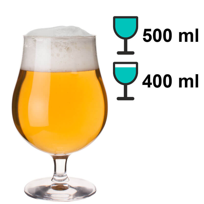 Der Bierpokal "Berlin" vom Hersteller Stölzle verfügt über einen umfangreichen, geschwungene Kelch. Dessen kugeliger Bauch hat einen Durchmesser von 9,3cm. Von dort aus verengt sich der Kelch nach oben hin etwas, jedoch ist der abschließende Mundrand erneut leicht ausgestellt. Dank der runden Kelchform liegt das Trinkglas gut in der Handfläche und ist zudem überaus kompakt und robust. Der offen stehende Kelch thront auf einem kurzen Stiel, welcher wiederum direkt in den verstärkten Fuß übergeht. Zwischen Kelch und Stiel befindet sich eine geschliffene Kante, welche als dekoratives Element fungiert und perfekt an die runde Unterseite des Trinkkelchs angepasst ist. Verkosten oder Servieren Sie darin Bier aller Art und natürlich Berliner Weisse.
