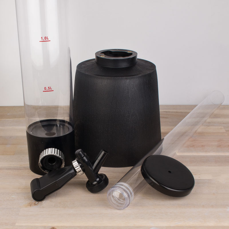 Durch die transparente Kunststoff-Säule ist der Füllstand jederzeit sichtbar. Praktische Markierungen in 0,5 Liter Schritten machen es besonders leicht, den Überblick zu behalten – sei es beim Nachfüllen oder beim gemeinsamen Mitfiebern, wie schnell sich die Säule leert.