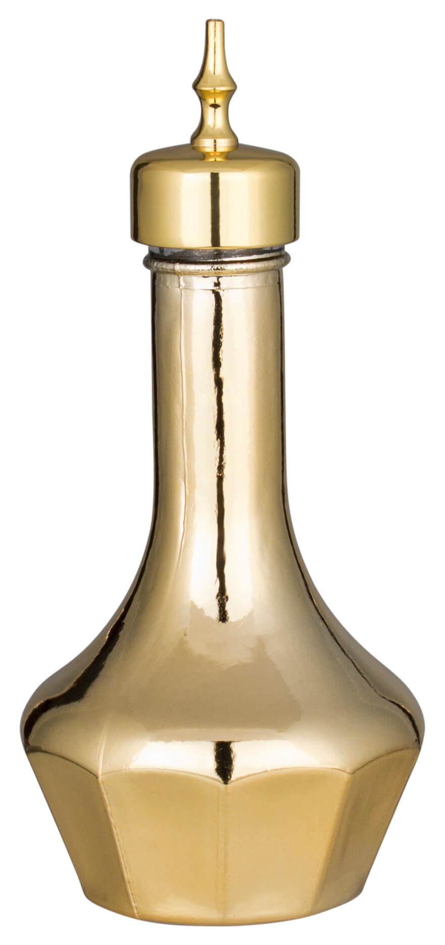 Diese Bitterflasche im Japanstyle eignet sich hervorragend, um edle Barausstattungen zu vervollständigen und der Bar ein klassisch-hochwertiges Aussehen zu verleihen. Die Bitterflasche ist mit einem glänzenden Überzug beschichtet und in verschiedenen Farben erhältlich. Diese sind von wertvollen Metallen inspiriert und überziehen auch den Boden der Flaschen. Passend zur jeweiligen Beschichtung gehört ein abschraubbarer Ausgießer aus farbig beschichtetem Metall zur Dashbottle. Alles in allem ist nur das Gewinde am Flaschenhals farblos, um ein einfaches Auf- und Abschrauben des Ausgießers zu ermöglichen.