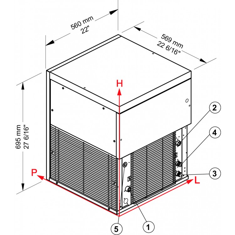 Dieser Eisbereiter arbeitet mit Luftkühlung. Für stabile Leistung sind dafür freie Zu- und Abluftwege sowie ausreichender Wandabstand entscheidend, damit Abwärme sicher abgeführt wird. Als Kältemittel arbeitet R290 (Propan) – energieeffizient, zeitgemäß und mit sehr geringer Treibhauswirkung.
