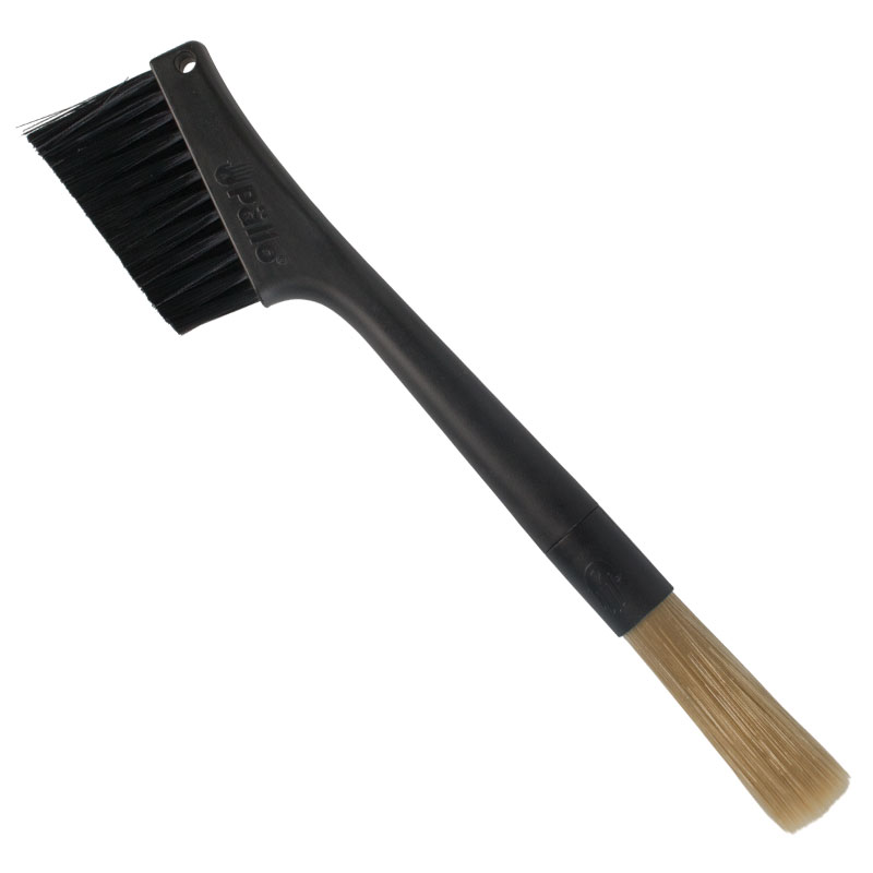 Dieses Tool für die Kaffeebar kombiniert zwei äußerst nützliche Bürsten miteinander: eine Bürste für Kaffeemühlen und einen Feger mit Nylonborsten für den Tresen. Beide können getrennt voneinander verwendet werden, sind aber dafür gedacht, sie zusammenzusetzen. Drehen Sie dafür die Stiele ganz ohne Werkzeug einfach aneinander. So können Sie mit einem lässigen Dreh aus dem Handgelenk zwischen Kaffeemühlenbürste und Tresenbürste wechseln. Wenn die Doppelbürste nicht gebraucht wird, kann sie an dem kleinen Loch aufgehängt werden.