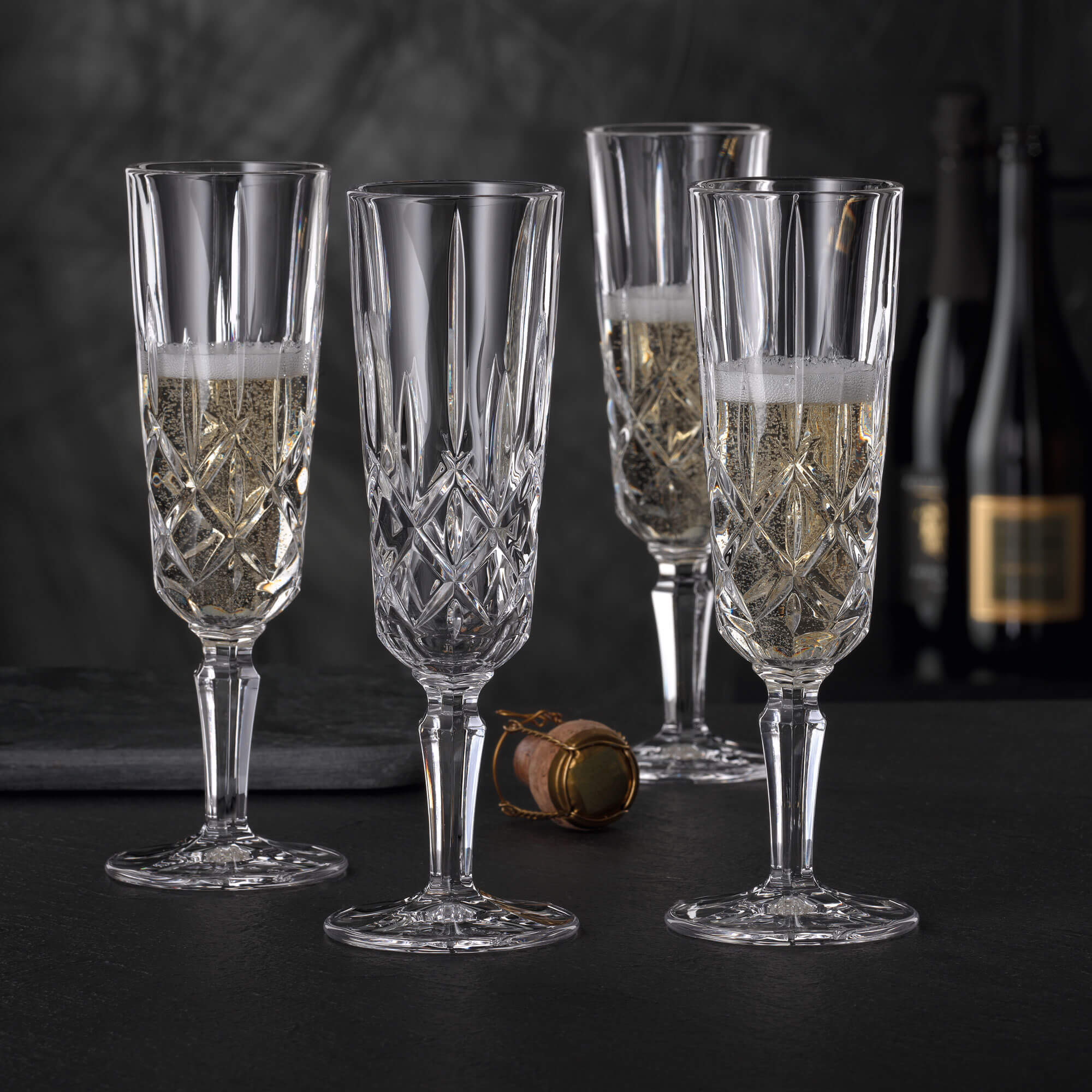 Mit diesem Champagnerglas wurde die beliebte "Noblesse" Kollektion von Nachtmann um ein weiteres Mitglied erweitert. Für Freunde dieser Serie, als auch Freunde des Schaumweins, dürfte dies ein Grund zum Feiern sein. Jetzt können Sie auch zu feierlichen Gelegenheiten mit Champagner in Gläsern dieses bewährten Designs anstoßen. Der Kelch des Glases wirkt vertraut und bringt ein bemerkenswertes Gewicht mit sich, wie man es aus dem Hause Nachtmann gewohnt ist. Am Stiel des Champagnerglases wurde das Design weitergeführt. Hier erstreckt sich ein sechseckiger Sockel bis zur Bodenplatte. Eine Einbuchtung kurz unterhalb des Kelches bietet sich für einen sicheren Griff mit Daumen und Zeigefinger an.