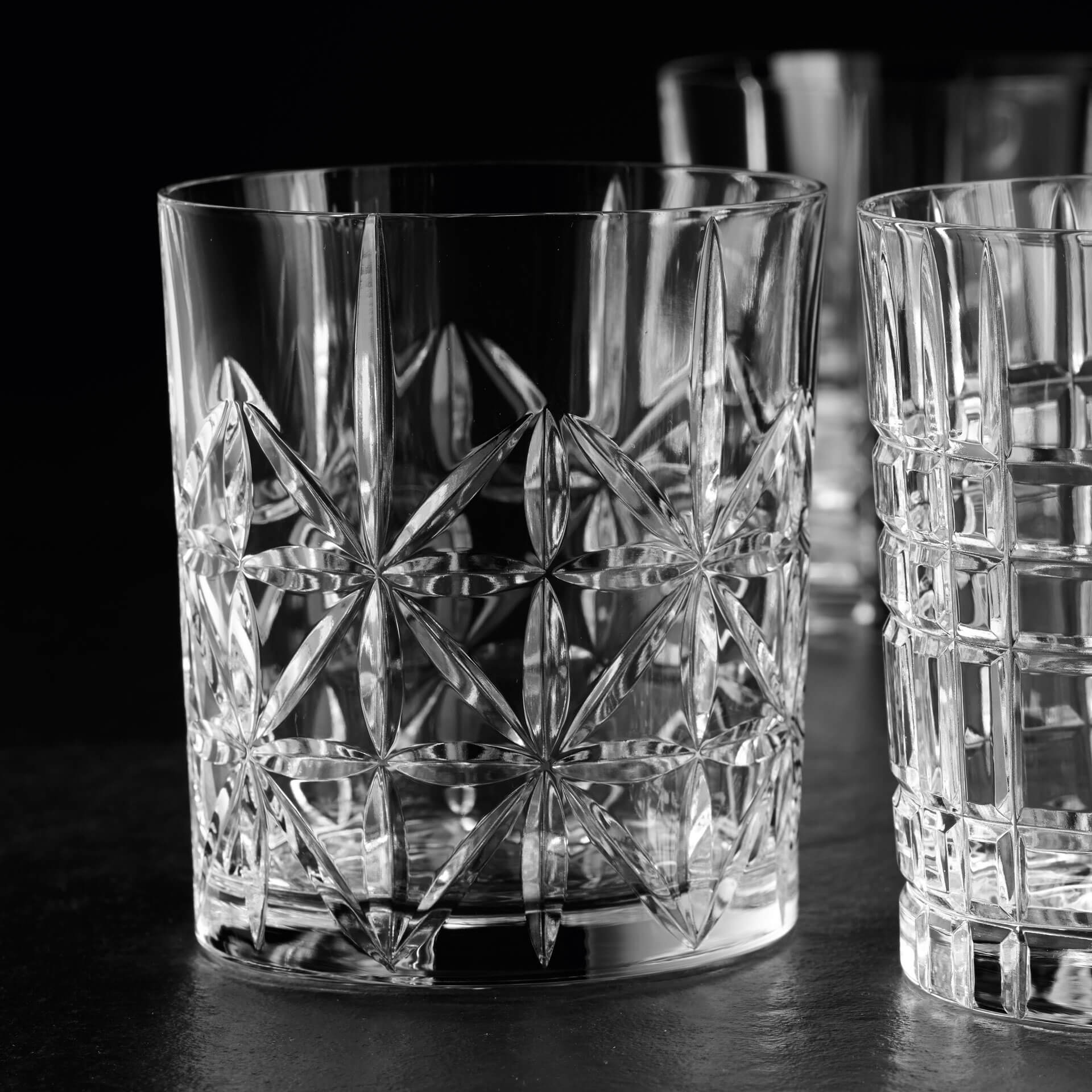 Die "Cross" Whiskeygläser der Highland Serie von Nachtmann haben ein Volumen von 345ml und eignen sich für das Servieren von Whiskey pur oder on the rocks sowie Cocktails und Shortdrinks.