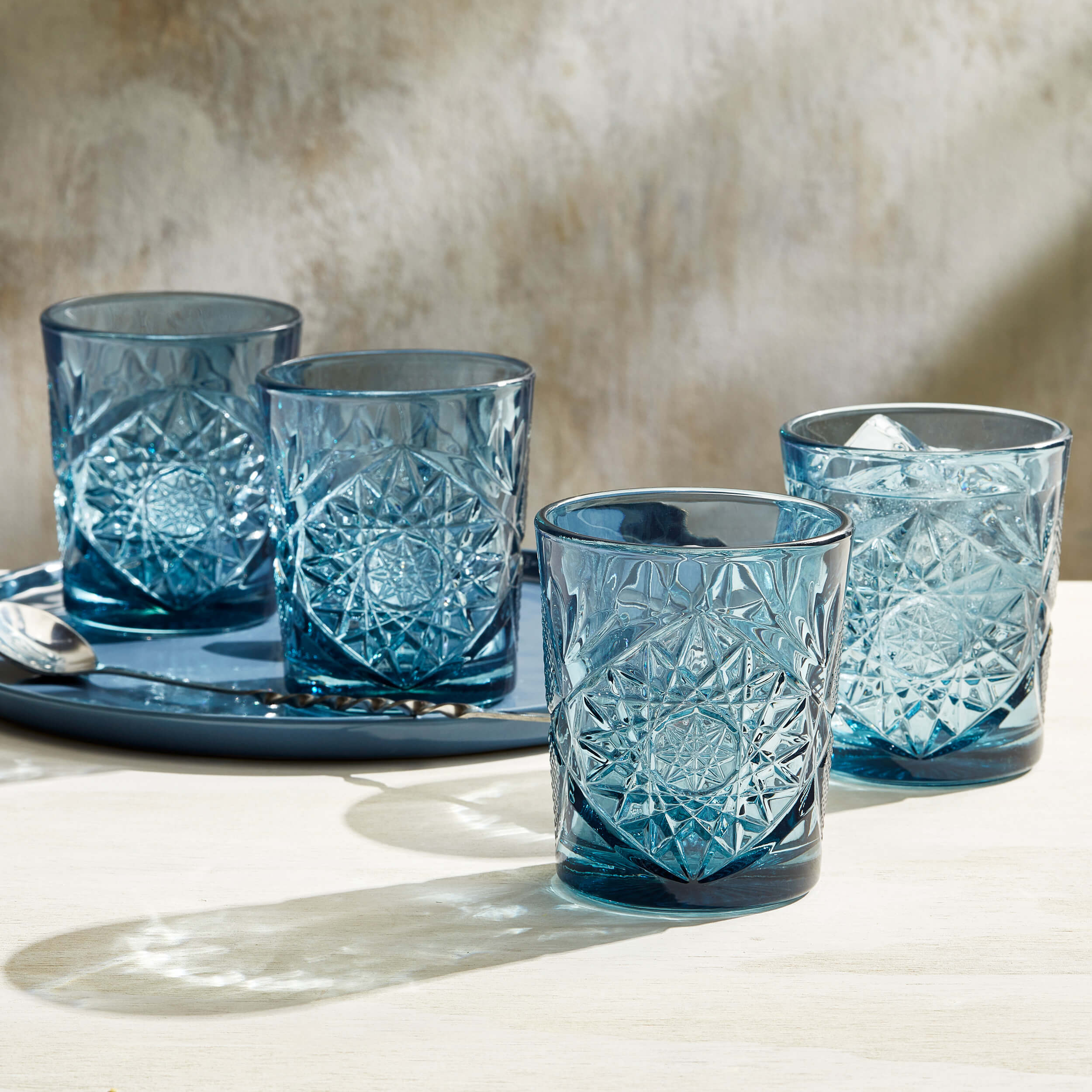 Mit der Serie "Hobstar" hat Hersteller Libbey einen Klassiker für die Bar erschaffen. Dieser blaue Tumbler nimmt das ikonische Design auf und bringt es mit einem satten Blau auf ungeahnte Höhen. Die sechs Double Old Fashioned Gläser sind dunkelblau mit einem türkisfarbenen Akzent. Unter direktem Licht hat das tiefe Blau einen geheimnisvollen grauen Schleier. Diese Tumbler können für das Servieren vieler in einer Bar beliebter Getränke genutzt werden. Das Blau harmoniert außerdem mit Zitronen- und Limettenscheiben, die als Cocktailgarnitur genutzt werden. Darüber hinaus eignen sich die blauen Gläser als Teelichthalter, da sie so auch für eine verspielte Tischdekoration sorgen.