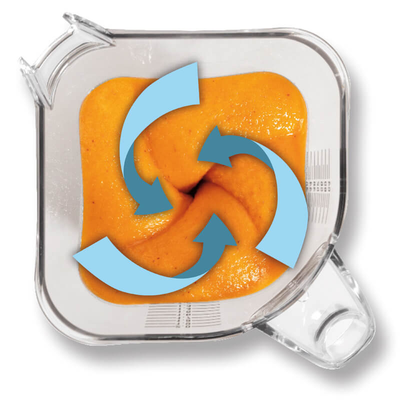 Während des Mixprozesses überzeugt das Eclipse™ Modell mit der herstellereigenen Wave~Action® Technologie. Deren Aufgabe ist es, die Glattheit des Ergebnisses zu gewährleisten. Dazu wird der Becherinhalt während des Verblendens kontinuierlich nach unten in die Edelstahlklingen gedrückt, sodass alles gleichmäßig und zu einer homogenen Masse gemixt werden kann.