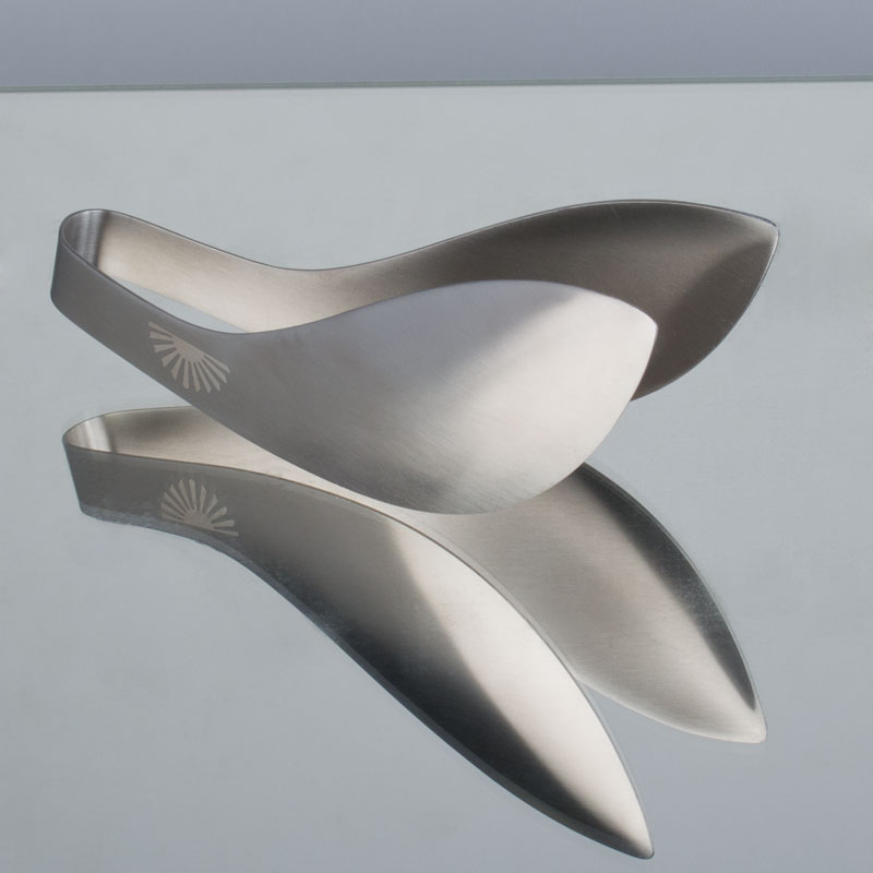 Die Eiszange in außergewöhnlichem Design besteht aus Edelstahl und ist 15cm lang. Mit ihrer an organische Formen erinnernden Form zieht die Zange alle Blicke auf sich. Neben Eiswürfeln und Eiskugeln eignet sich die Edelstahlzange auch für die Selbstbedienung am Buffet.