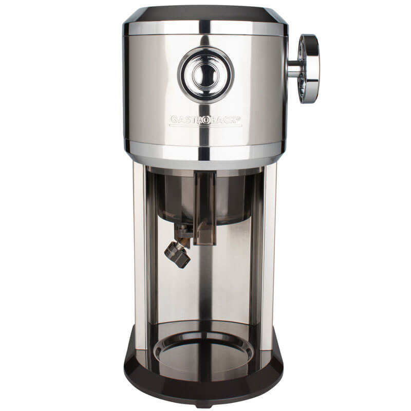 Mit dem Design Ice Shaver von Gastroback zaubern Sie schnell und einfach Slush Eis, Drinks und Eisbecher. Auch Shave Ice und Snow Cones werden dank der Maschine zu Ihrem Repertoire gehören. Zudem können Früchte, Saft, Kaffee, Milch und Joghurt verarbeitet werden, wenn sie vorher eingefroren wurden. Sogar Eiswürfel verarbeitet der Gastroback Design Ice Shaver zuverlässig.
