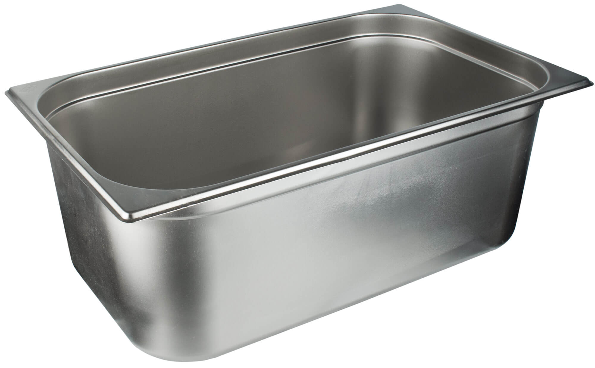 In der industriellen Gastronomie überzeugen Gastronormgefäße aus Edelstahl wie dieses mit Spülmaschinenfestigkeit, Hitze- und Kältebeständigkeit, sowie extremer Robustheit. Daher kommen die GN-Behälter bei Buffets, heißen Theken, Kühltheken, beim Catering und zur Benutzung in Öfen und Tiefkühlschränken zum Einsatz.