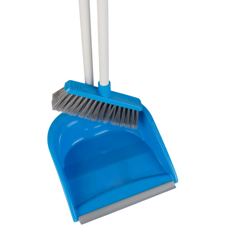 Kehrgarnitur Kehrschaufel mit Besen, blau - langer Griff