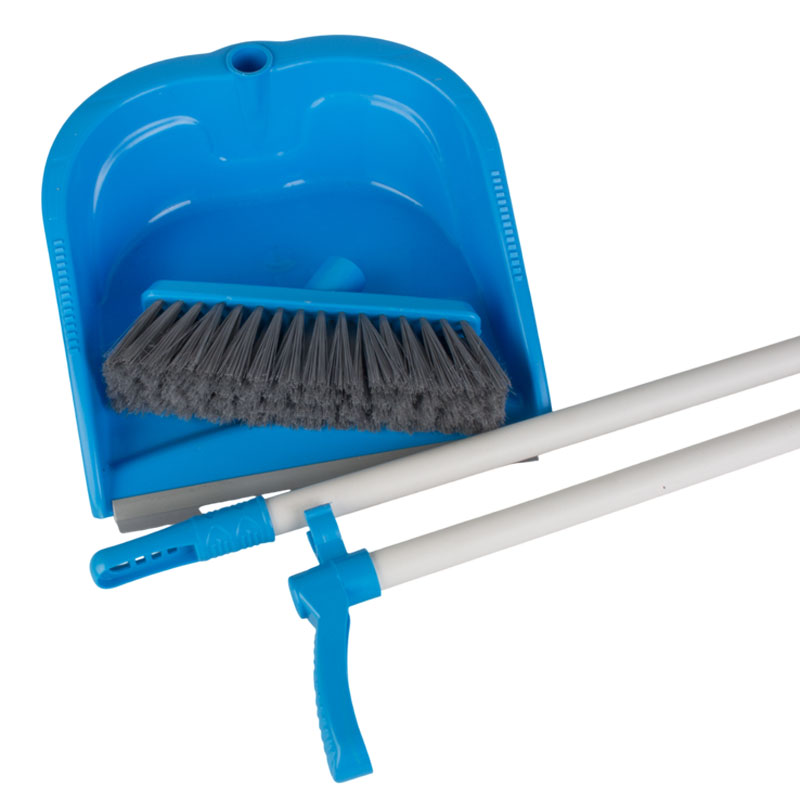 Produktinformationen "Kehrgarnitur Kehrschaufel mit Besen, blau - langer Griff"