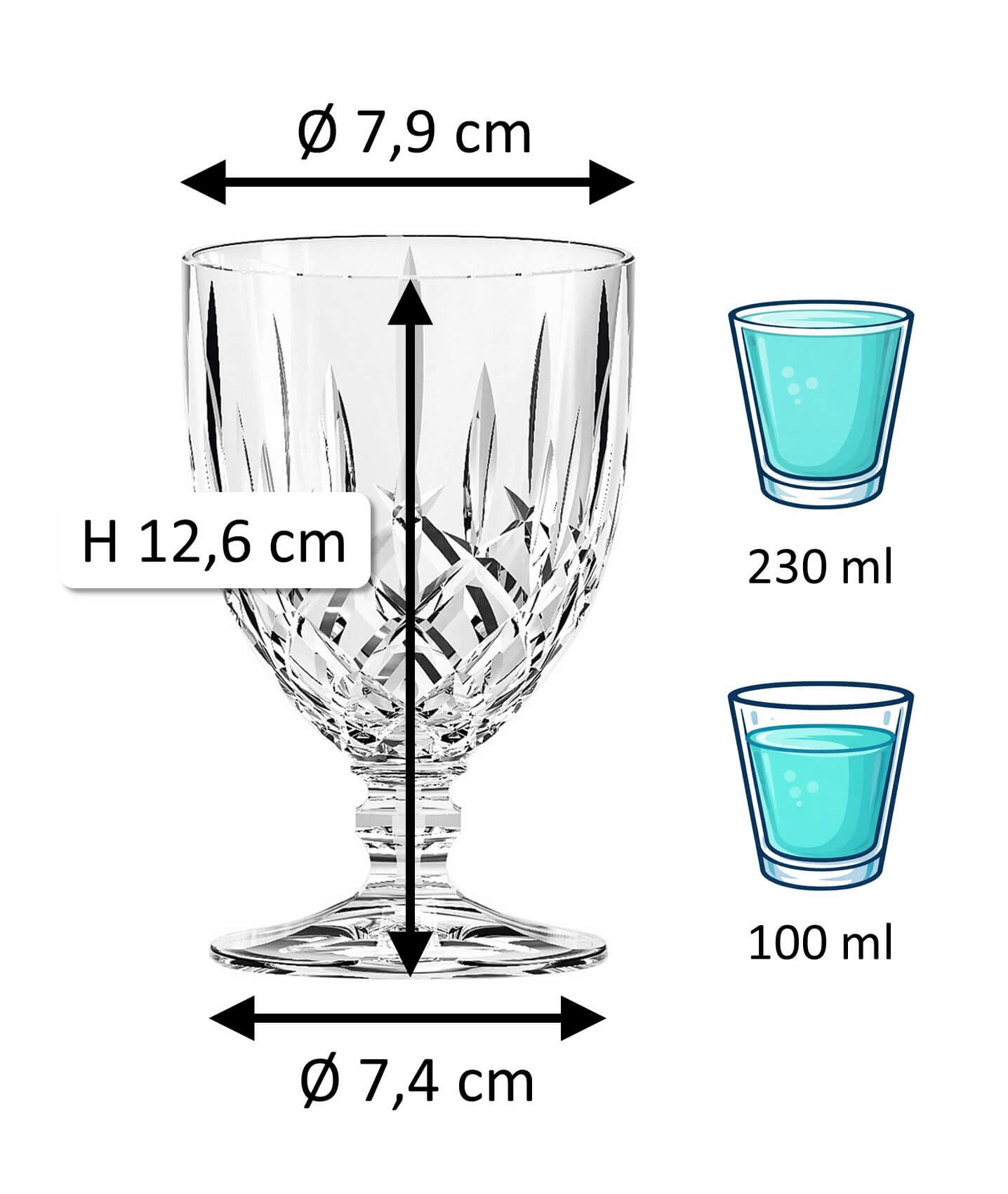 Mit einem Volumen von 230ml bietet sich das Stielglas für kleinere Mengen Wein an und ist auch perfekt für Wasser und Säfte geeignet.