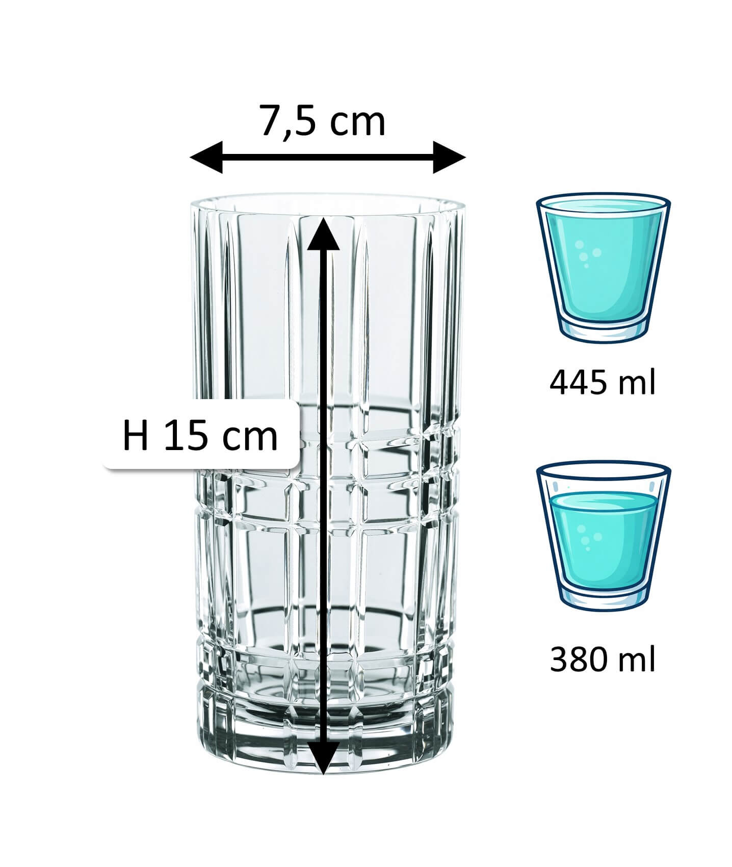 1Hinweis: Das angegebene „Gesamtvolumen“ (auch Bruttoinhalt) eines Glases bezeichnet die maximale Flüssigkeitsmenge, die bis zum Rand eingefüllt werden kann. Im Gegensatz dazu beschreibt das „Füllvolumen“ (auch Nutzvolumen oder Ausschankvolumen) die praktisch verwendbare Menge. Beide Werte werden in ml oder l angegeben. Produktionsbedingt kann es zu einer Toleranz von ±5% kommen, was den branchenüblichen Standards entspricht und keinen Mangel darstellt.