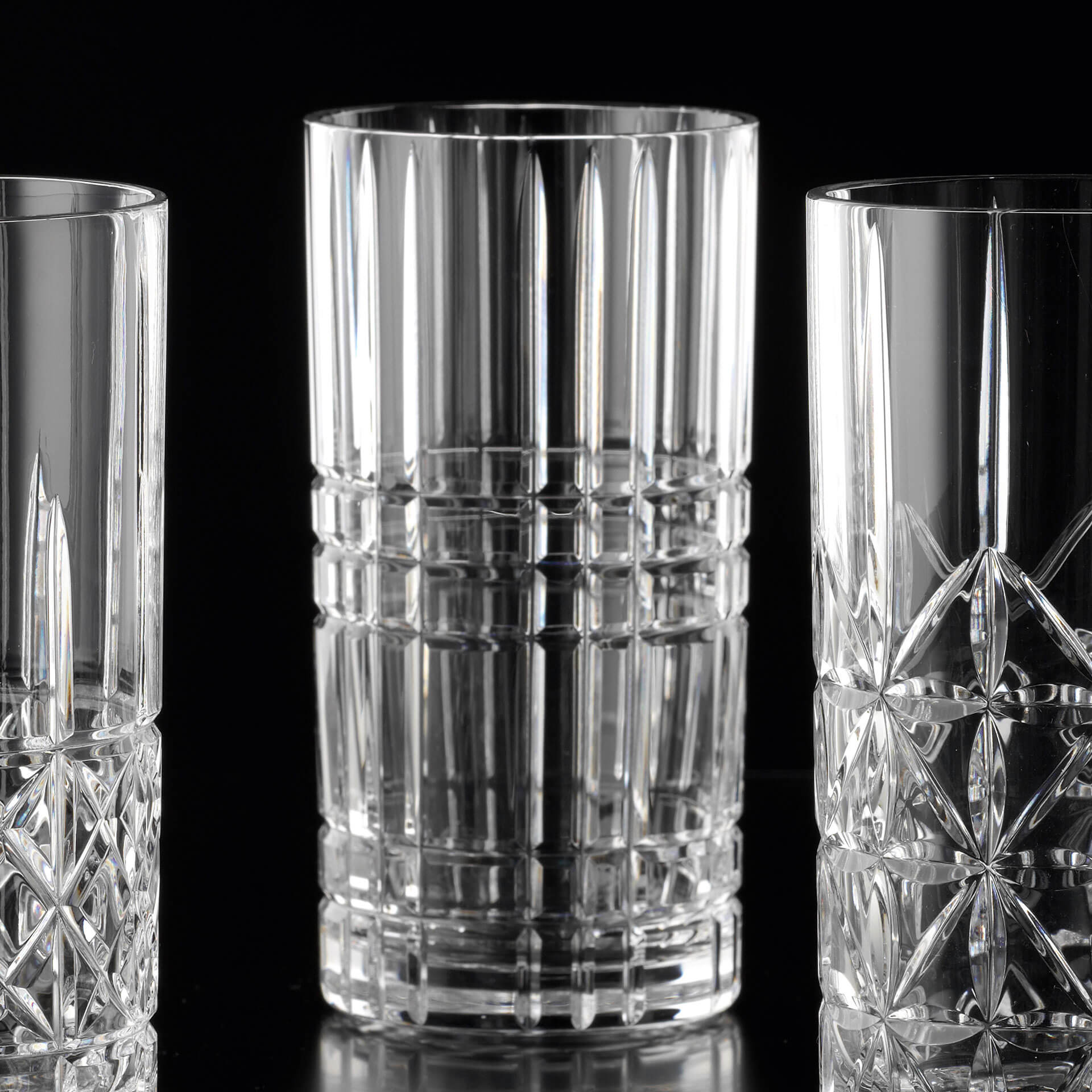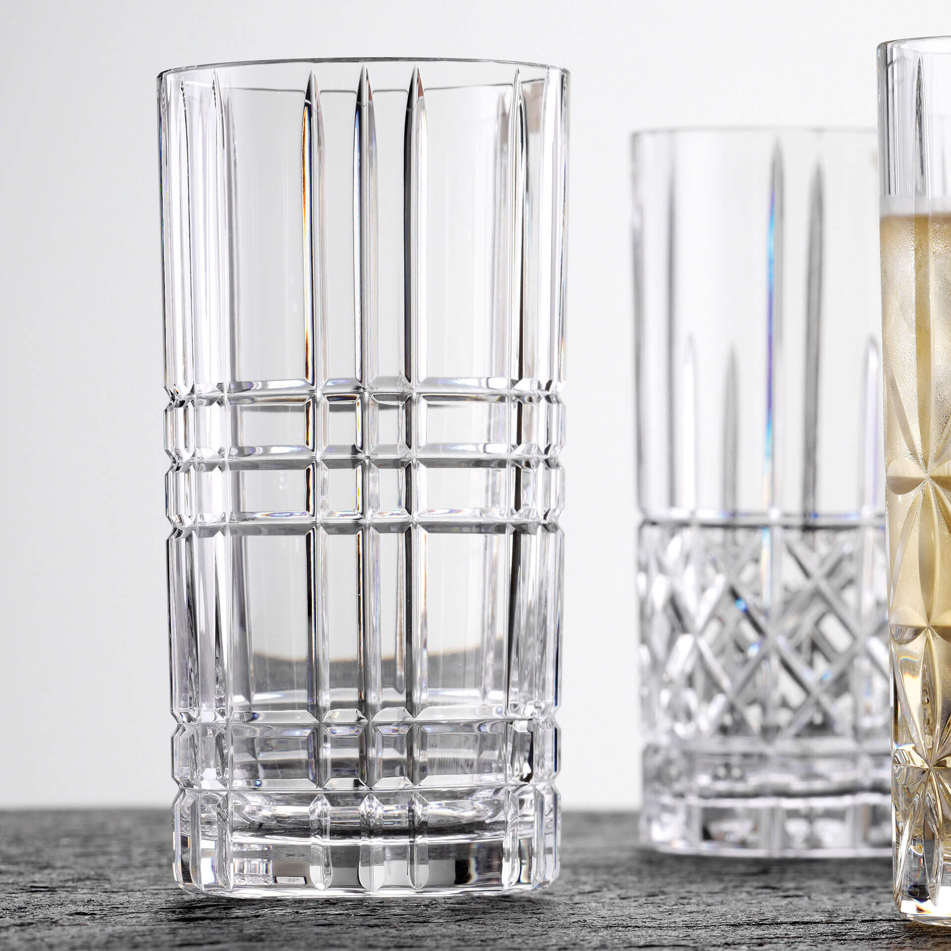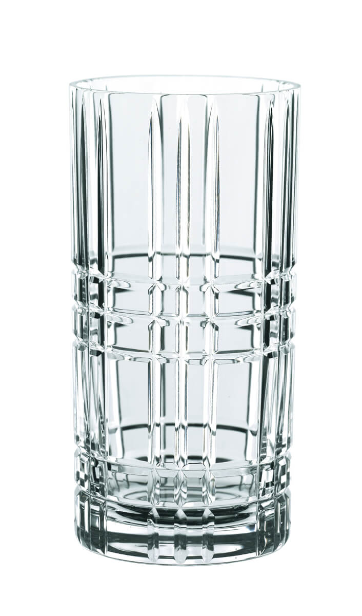 Hochbrilliantes, gehärtetes Kristallglas mit den lichtbrechenden Facetten kommt in schummriger Beleuchtung besonders gut zur Geltung. In diesem Longdrinkglas wird bestimmt kein Energydrink mit Wodka serviert, sondern ein Collins.