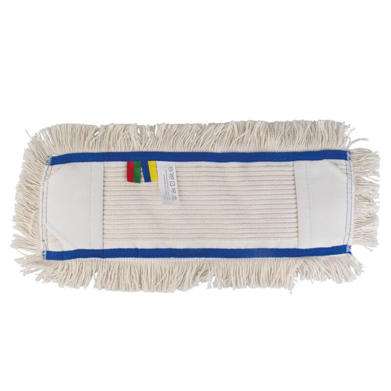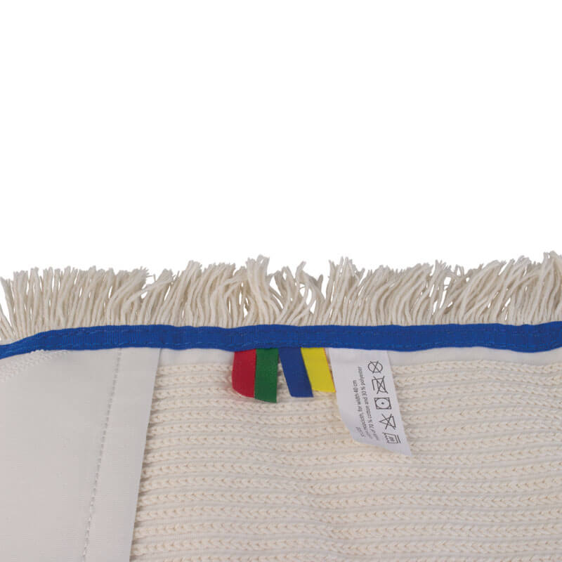 Dieser Mikrofaser-Wischmopp aus Baumwolle hat Fransen für eine noch bessere Wischleistung. Der innere Bereich mit kurzen Fasern ist ca. 41x13 cm groß. Zusammen mit den Fasern misst der Mopp etwa 50x23 cm. Wenn Sie einen Wischmopp-Halter auswählen, achten Sie bitte darauf, dass er für 40cm Wischmopps mit Taschen geeignet ist. Auf der Rückseite des Mikrofaser-Wischmopps befinden sich Fahnen in vier verschiedenen Farben, welche die Farbkodierung für perfekte Hygiene im professionellen Umfeld erleichtern.