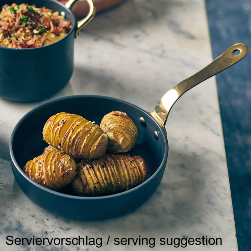 • Hart eloxiertes Aluminium ist langlebig, leicht und kratzfest • Gebürstete Oberfläche • Stilvoller Messinggriff • Perfekt für kleine Gerichte und Beilagen • Perfekt für zwangloses und gehobenes Ambiente