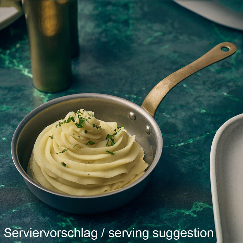•Aus Edelstahl •Industrielles Vintage-Finish •Attraktiver Messinggriff •Ideal für Beilagen, Vorspeisen und Desserts