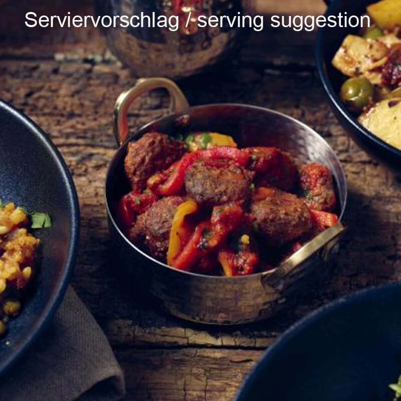 •Aus gehämmertem Edelstahl •Messinggriffe •Ideal zum Servieren von Vorspeisen, Beilagen und Saucen
