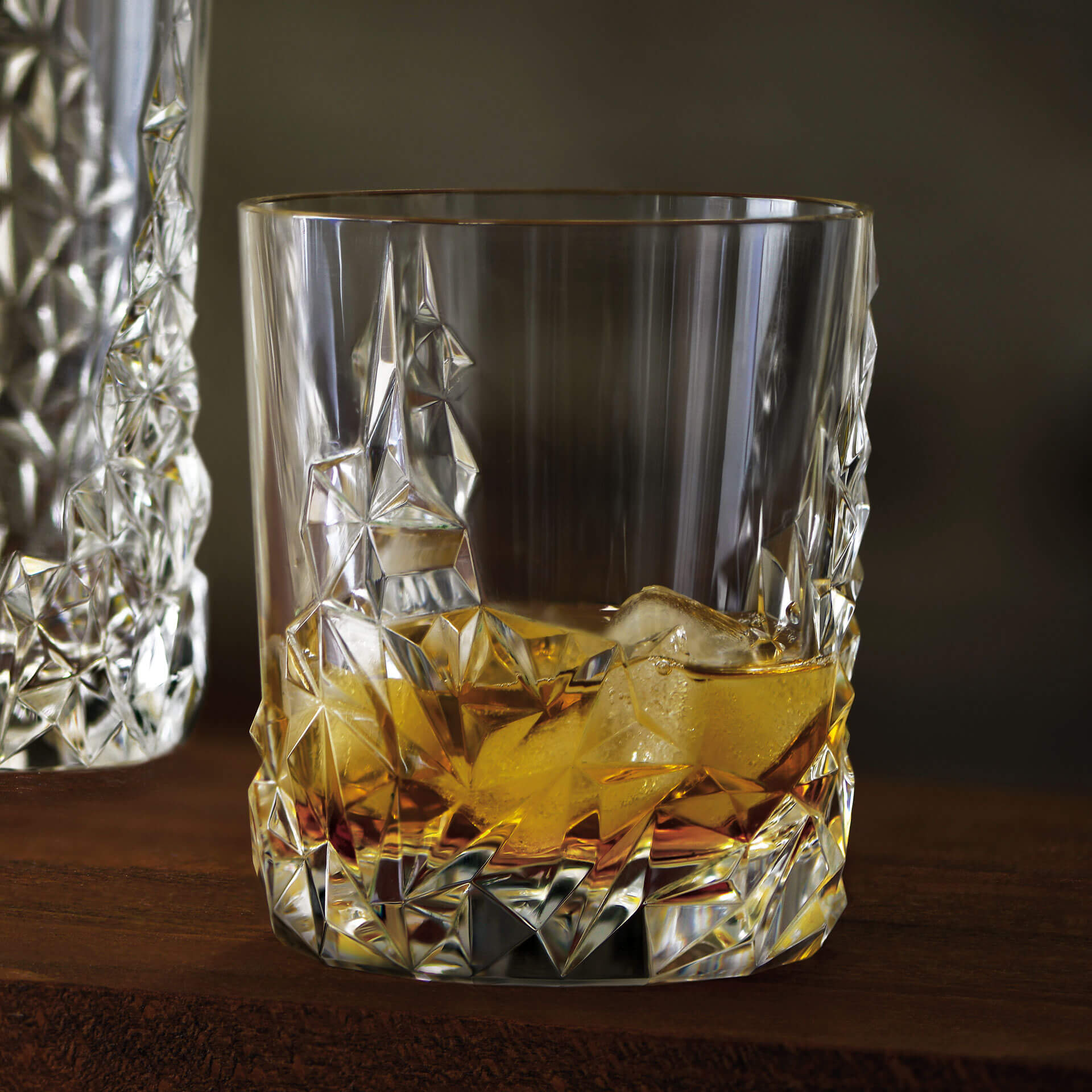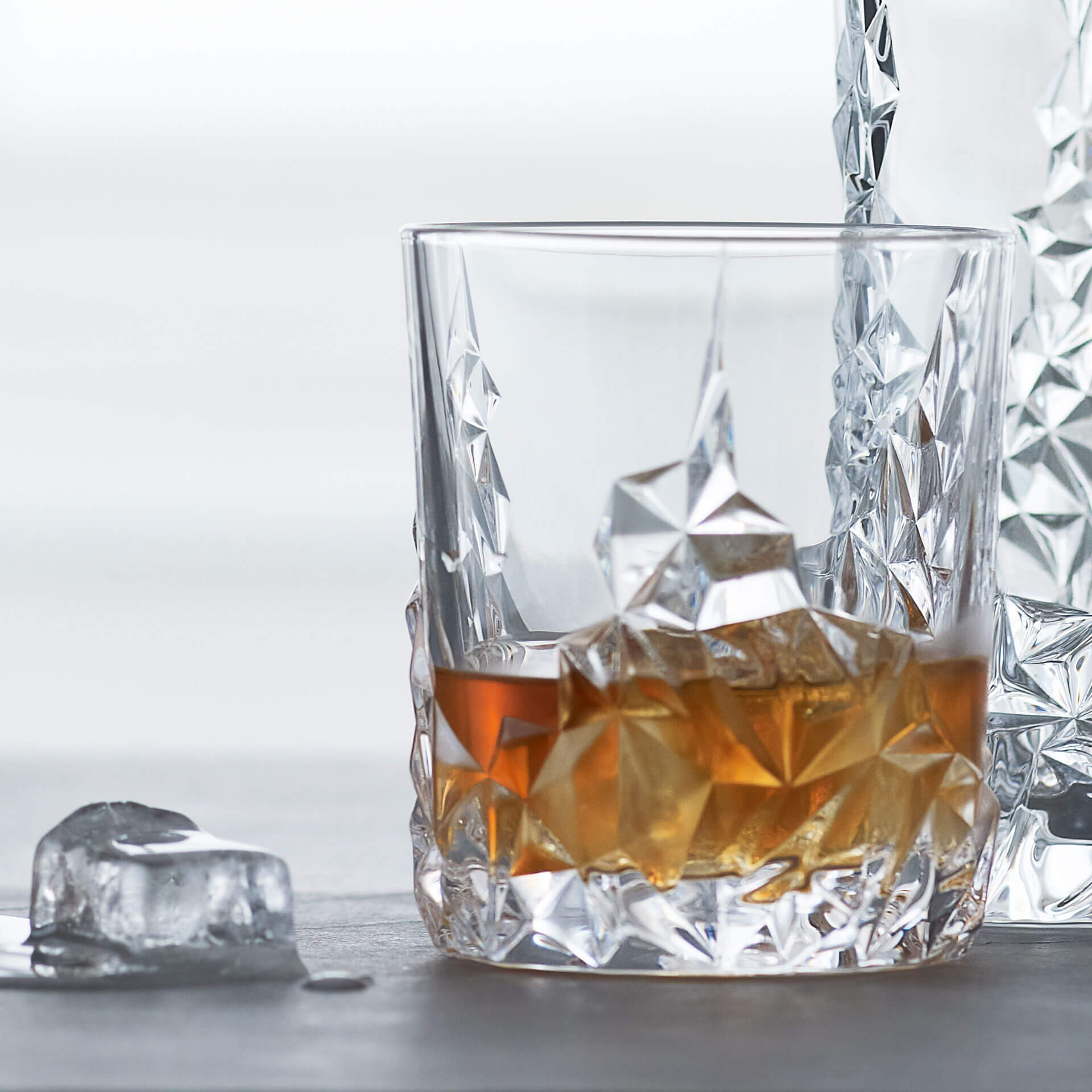 Die spektakuläre Serie Sculpture von Nachtmann bietet auch ein Whiskeyglas der Extraklasse. Die ausgefallene Reliefstruktur mit ihren tiefen Facetten erinnert aufsteigende Eiskristalle.