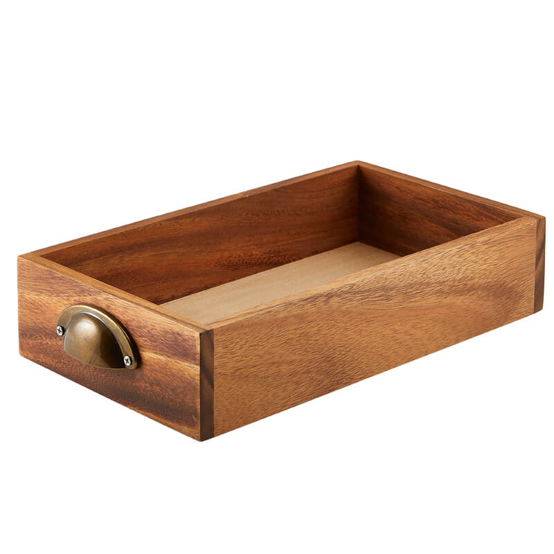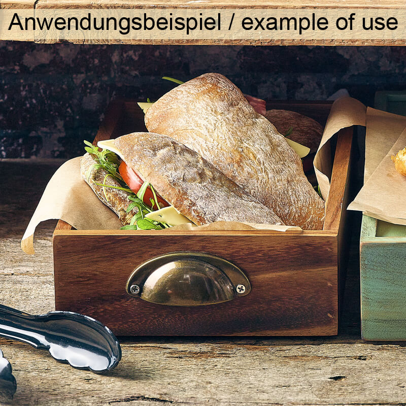 •Aus Akazienholz •Natürliches Akazienholz-Finish •Größe GN1/3 •Mit attraktiven Messinggriffen