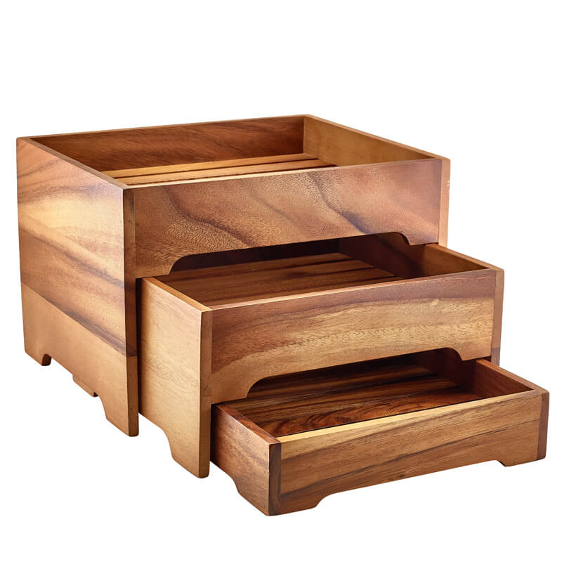 •Aus Akazienholz •3-stöckiges Design •Obere Ebene kompatibel mit einer Vielzahl von GN 1/2-Platten