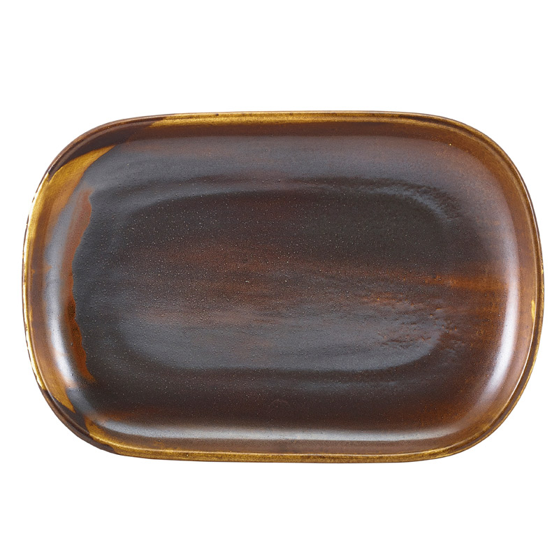 Der 24 × 16,5 cm große rechteckige Teller der Terra Rustic Copper Serie verbindet rustikale Kupfertöne mit dezenten Patina-Schattierungen und schafft eine warme, charaktervolle Bühne für moderne Speiseninszenierungen. Das lebendige Glasurspiel entsteht im Hochtemperaturbrand und verleiht jedem Teil seinen individuellen Ausdruck. Das vitrifizierte Porzellan erfüllt den BS4034-Standard für anspruchsvolles Hotelgeschirr. Gerollte Kanten sorgen für erhöhte Widerstandskraft, der polierte Fuß schützt Oberflächen beim Stapeln. Für den täglichen Gastroeinsatz bestens geeignet: spülmaschinenfest, mikrowellengeeignet und ofenbeständig.