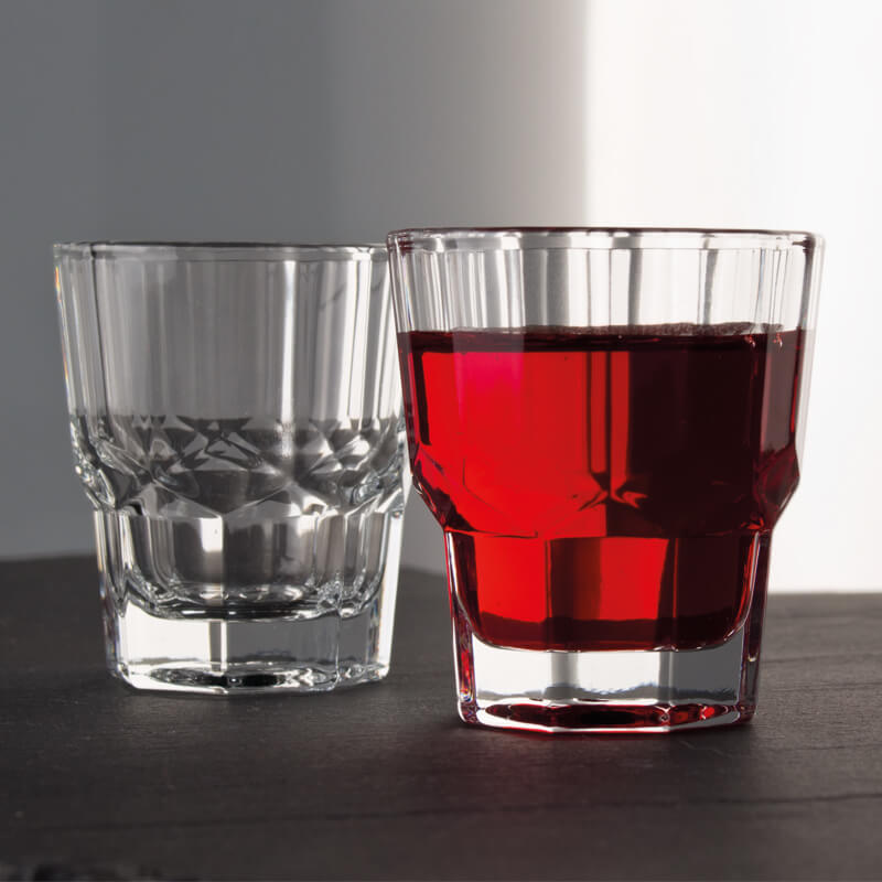 Schnaps trinken war noch nie so stylish – dieses Schnapsglas aus der Serenity Kollektion des türkischen Glasherstellers Pasabahce vereint scheinbare Gegensätze in einem kunstvollen Design. Ober- und Unterseite des Glases weisen jeweils eine unterschiedliche Anzahl an Ecken auf, während sich in der Mitte ein Band aus rautenförmigen Mustern um das gesamte Glas zieht. In der Praxis überzeugt es zusätzlich durch die gewohnte Pasabahce Markenqualität.