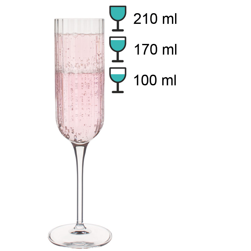 Servieren Sie im eleganten Sektkelch aus der Bach-Serie neben Sekt und Champagner auch Cocktails auf Sekt-Basis, wie Bellini oder Kir Royal. Das Gesamtvolumen von 210ml bietet sich für die gängige Menge von 0,1l Sekt an, wobei Cocktails auch größer sein dürfen.