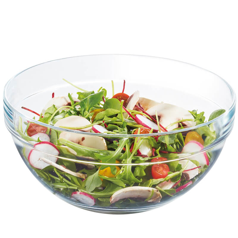Ob am Buffet, auf dem Tisch oder in der Küche - die ca. 23cm breite Glasschale bietet viel Platz für allerlei vorbereitete Speisen wie gemischte Salate oder Obstsalat.
