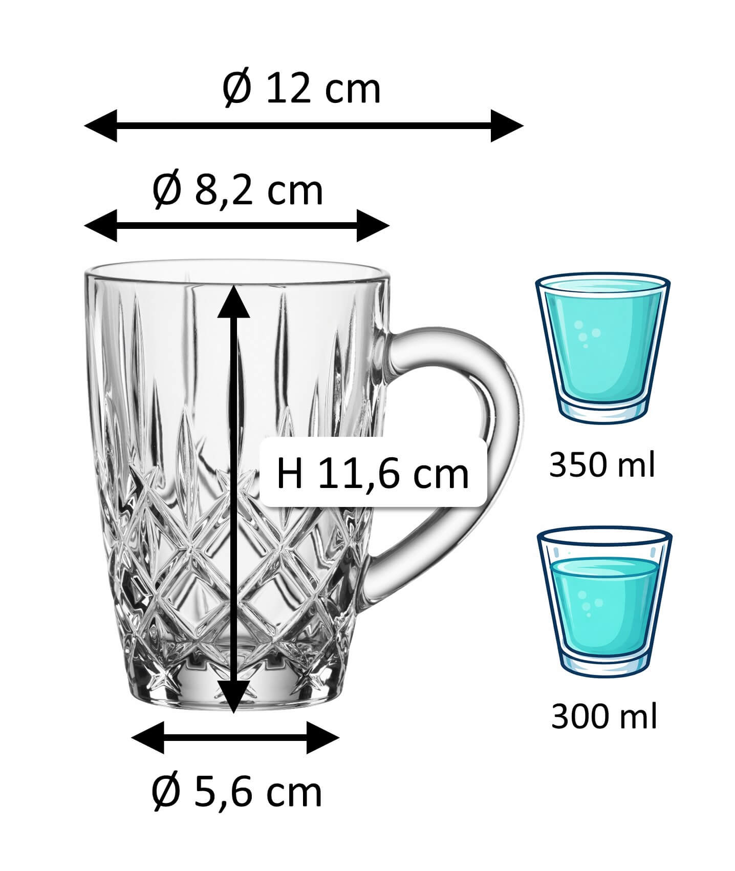 1Hinweis: Das angegebene „Gesamtvolumen“ (auch Bruttoinhalt) eines Glases bezeichnet die maximale Flüssigkeitsmenge, die bis zum Rand eingefüllt werden kann. Im Gegensatz dazu beschreibt das „Füllvolumen“ (auch Nutzvolumen oder Ausschankvolumen) die praktisch verwendbare Menge. Beide Werte werden in ml oder l angegeben. Produktionsbedingt kann es zu einer Toleranz von ±5% kommen, was den branchenüblichen Standards entspricht und keinen Mangel darstellt.
