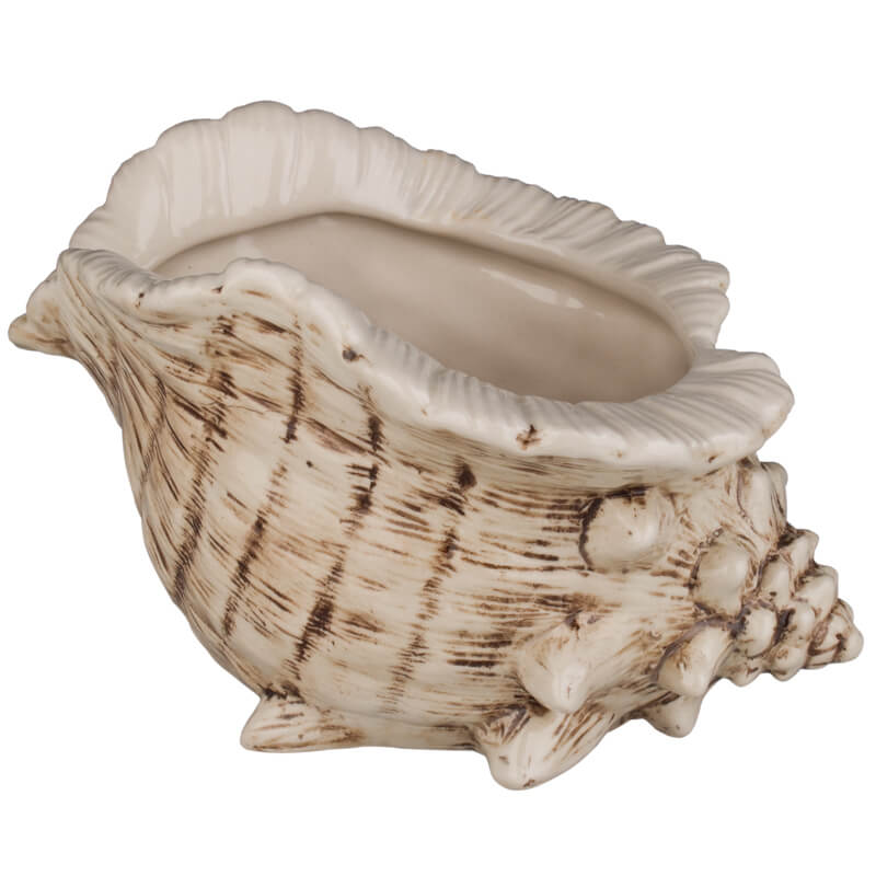 Die braunen Schattierungen auf dem beigen Becher sorgen für einen naturnahen Look. Die Oberfläche ist außerdem strukturiert, was den Eindruck einer echten Meeresschnecke noch verstärkt.