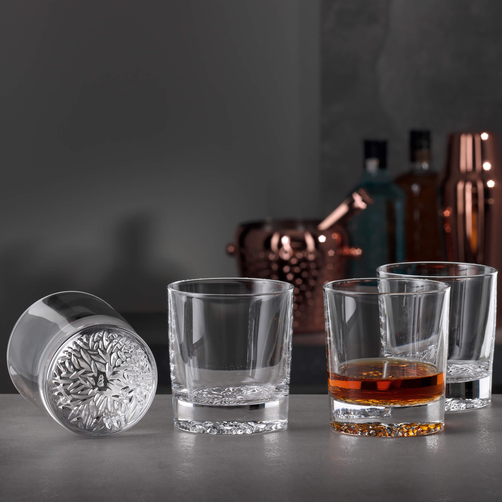 Von der Form her ist der Tumbler ein schlichtes, rundes Trinkglas; der Clou des Designs ist allerdings das Bodeneis: Spiegelau bezeichnet das dreidimensionale Dekor auf der Unterseite als "Swarm-Motiv" (Schwarm-Motiv). Beim Servieren werden Ihre Gäste sicher von der Tatsache begeistert sein, dass sich die Farbe des Drinks in diesem Motiv widerspiegelt!